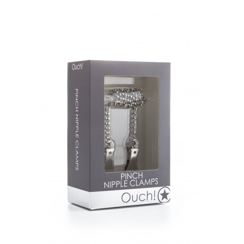 Pinch Nipple Clamps - Metal These nipple clamps with chain from Ouch! are easy to use and suitable for both him and her. The clamps and chain are made of stainless steel and aluminum, and are completely nickel-free. You can use the nipple clamps for your naughty secrets, or for extra stimulation while making love.