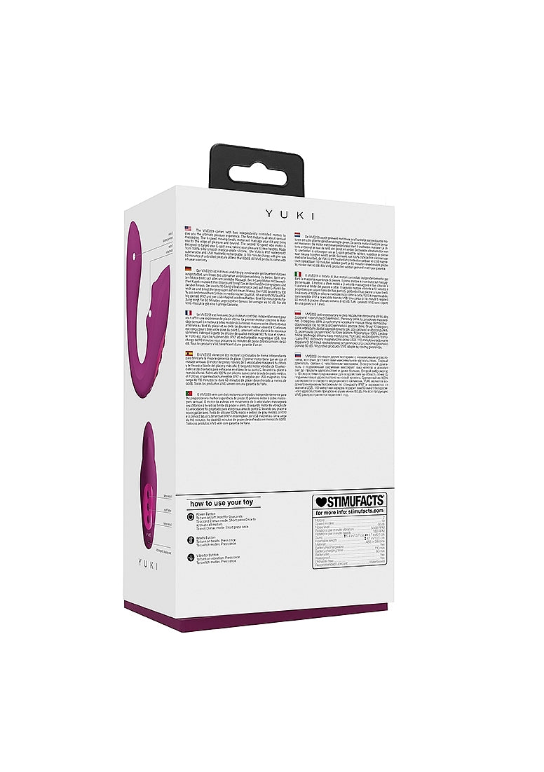 The YUKI comes with two independently controlled motors to give you the ultimate pleasure experience. The first motor is all about sensual massaging. The 3-speed moving-beads motor will massage your clit and bring you to the edge of pleasure and beyond. The second 10-speed vibe motor is designed to target your G-spot area, taking your pleasure to new heights. Made from 100% silky smooth medical-grade silicone, the YUKI is IPX7 waterproof/submersible and USB magnetic rechargeable. A 110-minute charge will give you 60 minutes of unbridled pleasure at less than 60dB. All VIVE products come with a 1-year warranty.