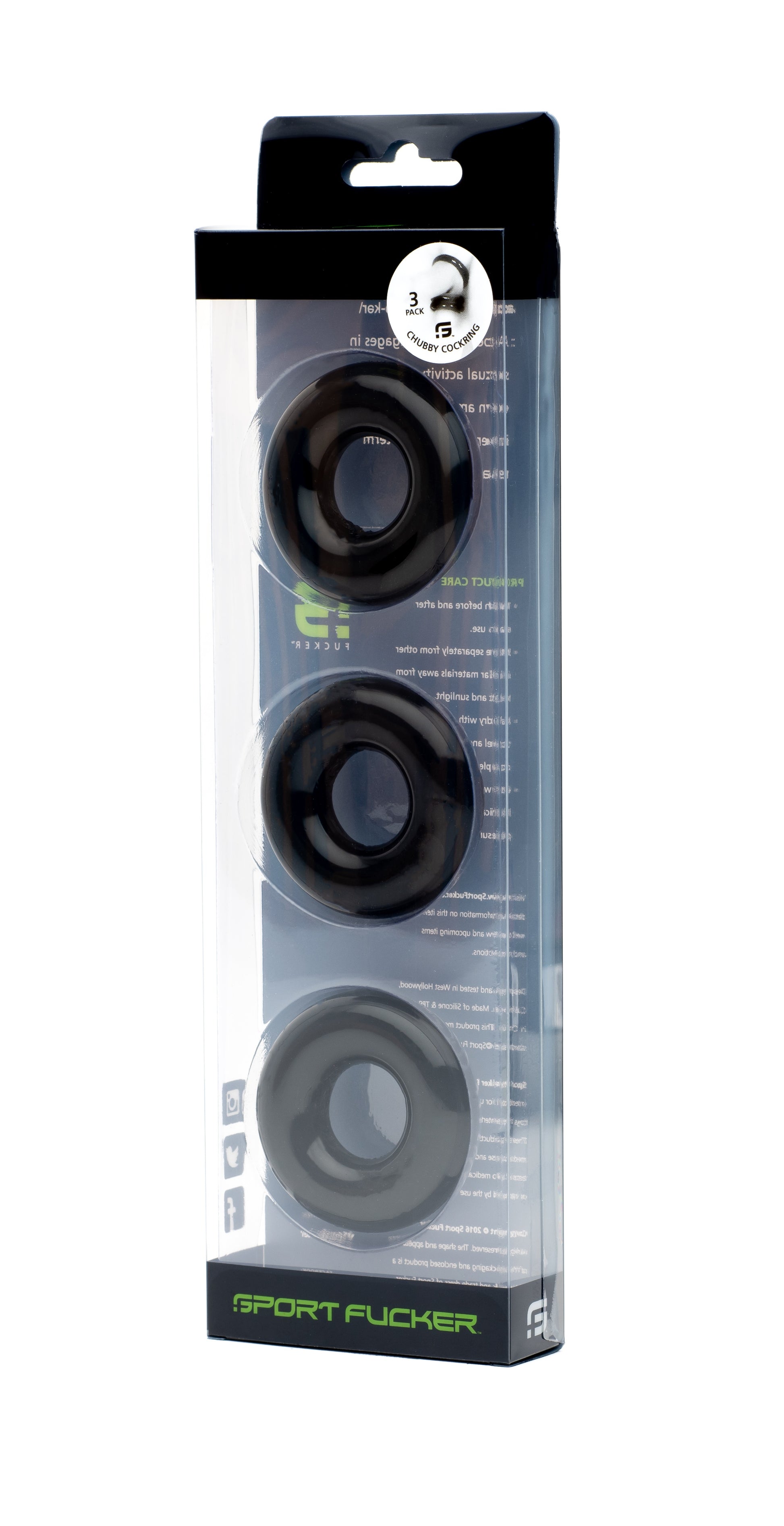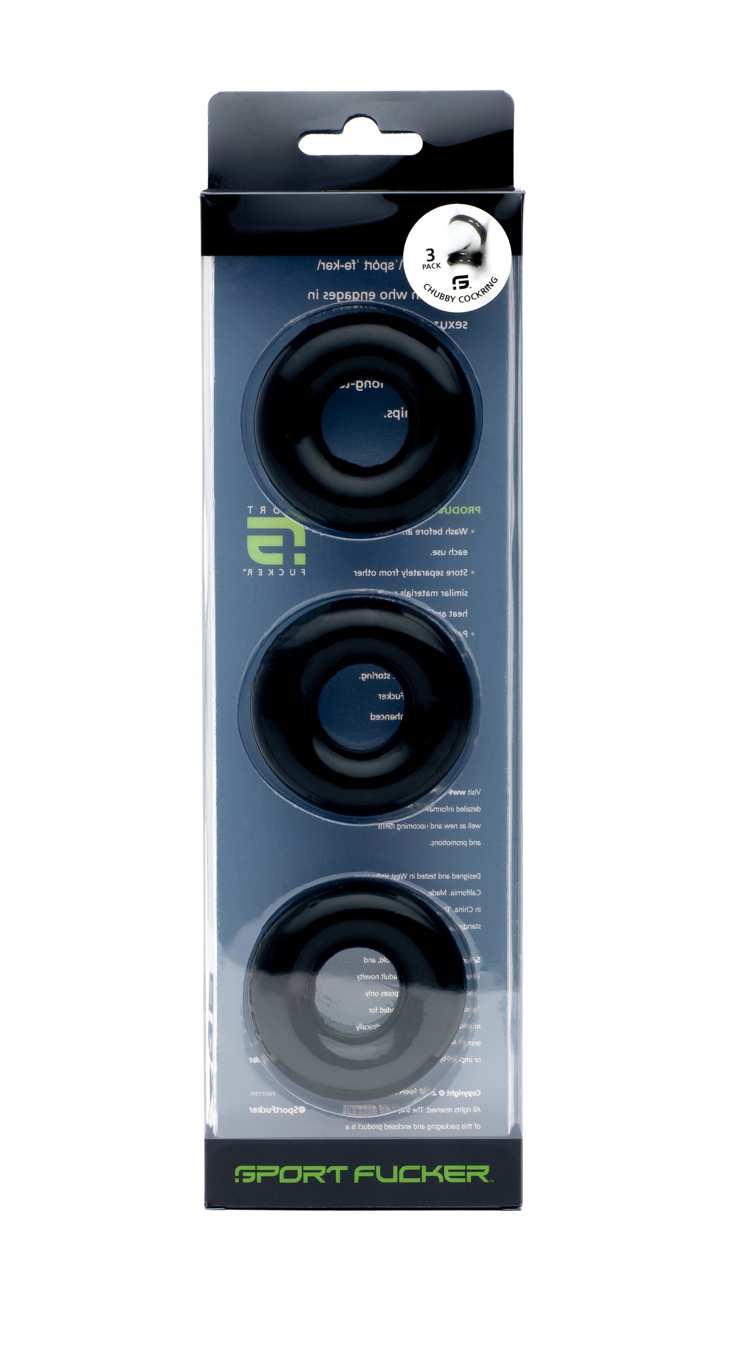 Sport Fucker Rubber Cock Ring 3 Pack Black