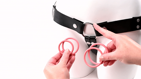 Use with Strap Ons, underwear harnesses, interchangeable O Rings and dildos with 2” (5.08 cm) - 3.75” (9.53 cm) bases.