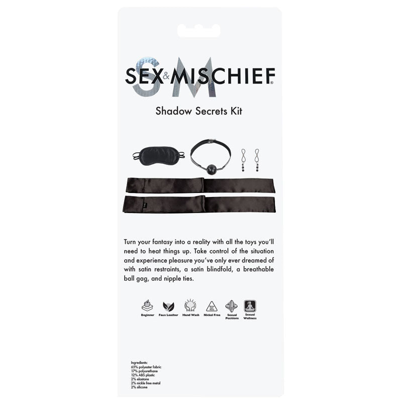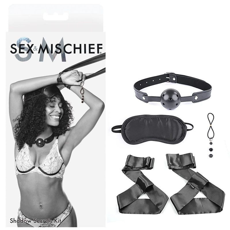 Sportsheets Sex & Mischief Shadow Secrets Kit - Black Beginners Bondage Kit - 4 Piece Set
