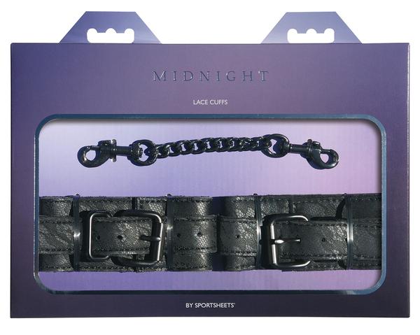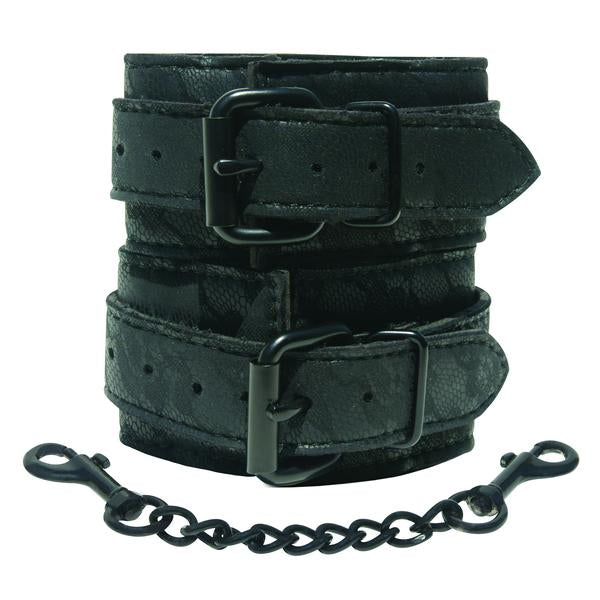 Restraint can be a luxurious experience. Feel the gentle caress of the soft and Inviting fabric of fine lace as they secure around your wrists. These sexy cuffs come with black metal buckles and a strong black metal chain with 2 clasps.