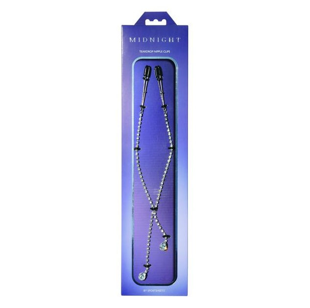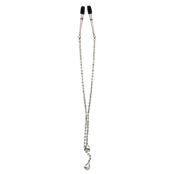 The pair of sparkling teardrop crystals at the end of each 18 inch (45.72cm) bejeweled chain look inviting The only tears that will be shed this night will be those of unbridled passion