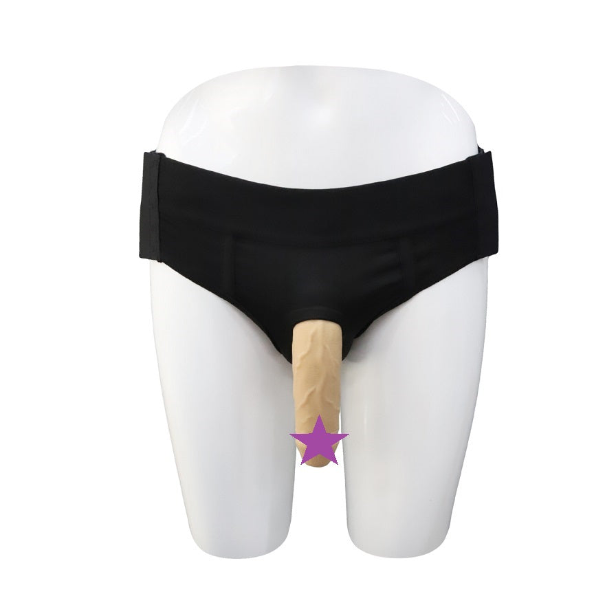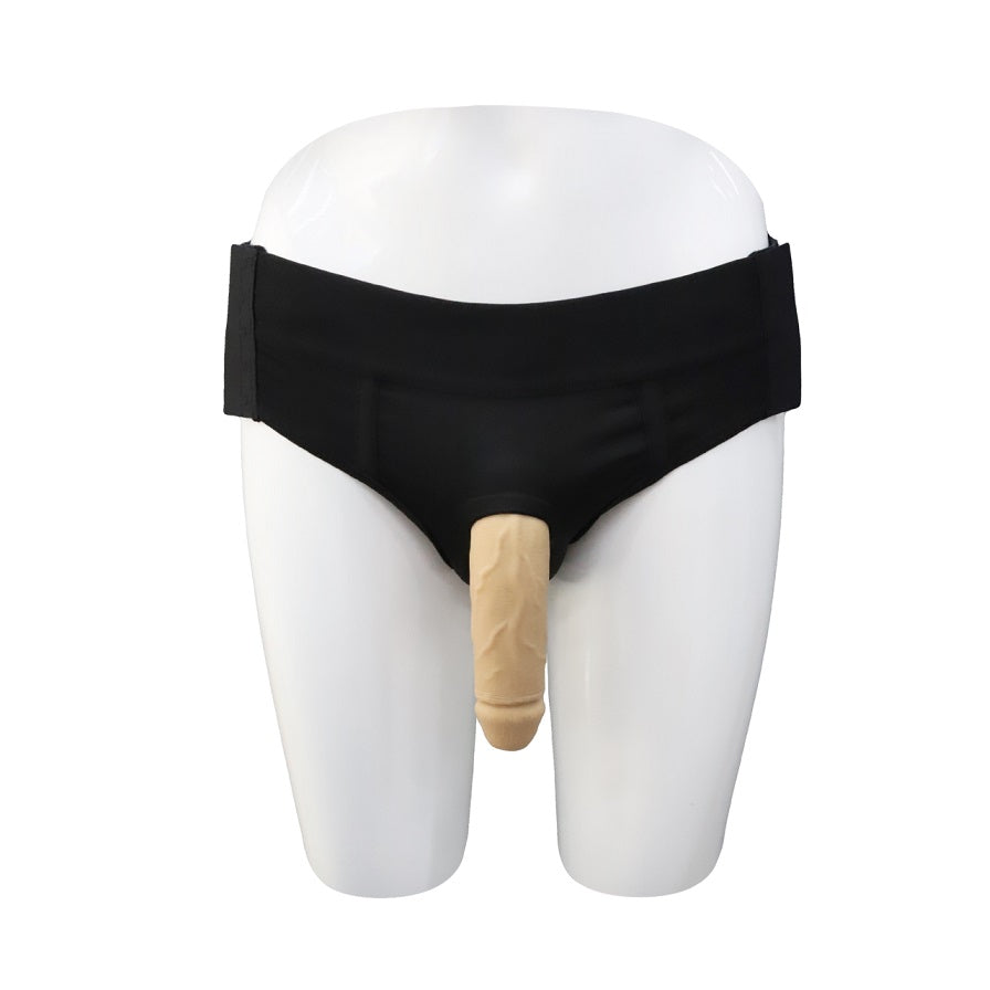 FTM packer with underpants packer: material packer: silicone length packer: 14cm diameter packer: 4cm weight packer: 360g panty: material: 95% polyester, 5% elastane waist: 70-82cm hole diameter for packer: 3.5cm
