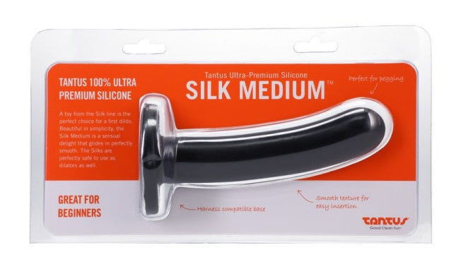 A toy from the Silk line is the perfect choice for a first dildo. This line will allow you to safely try a new experience and not feel awkward or embarrassed about purchasing an extreme toy. The Silks are perfectly safe to use as dilators as well.