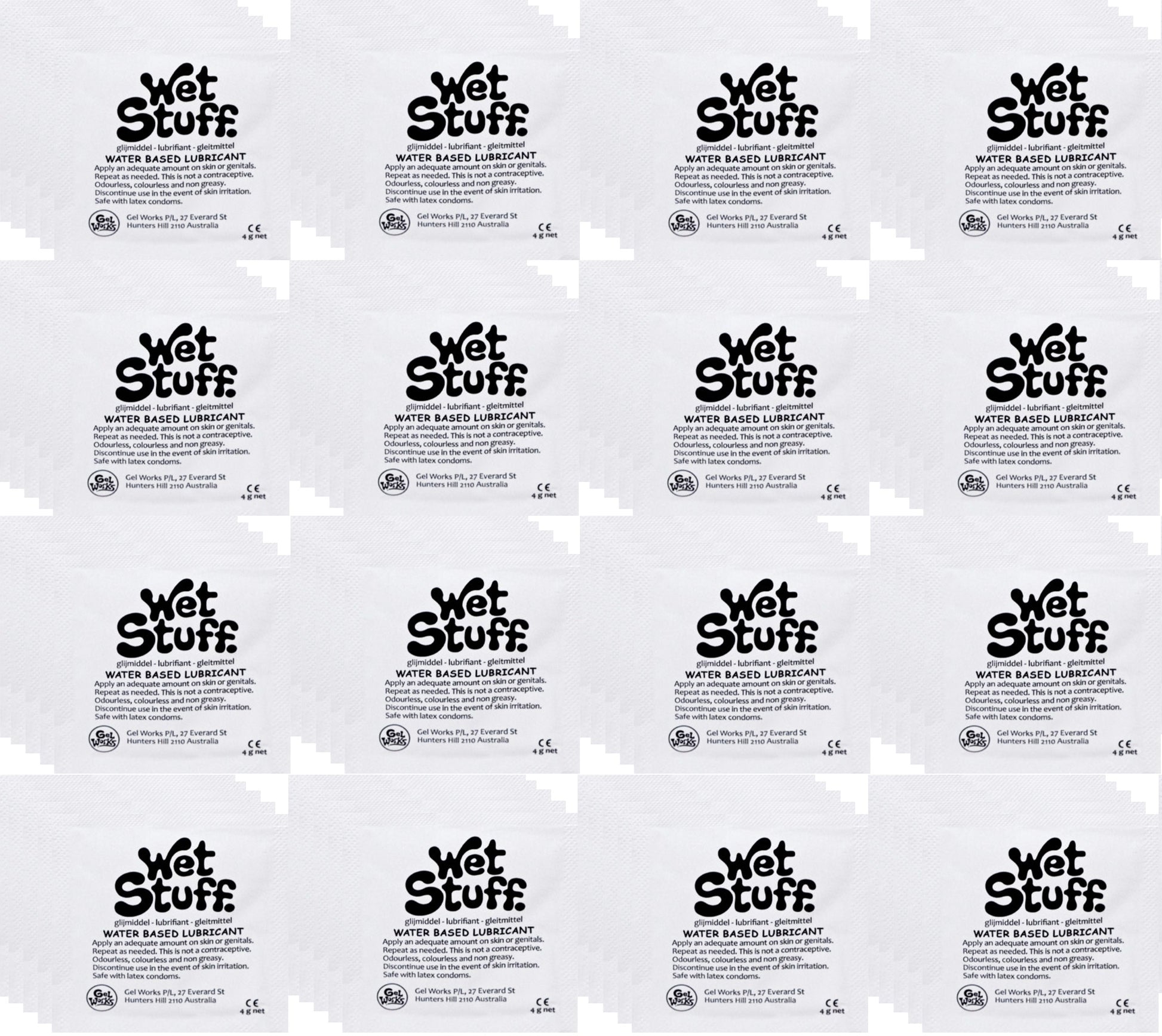 Wet Stuff Plain with Vitamin E Water Based Lubricant Sachets 4g (100 Pack)