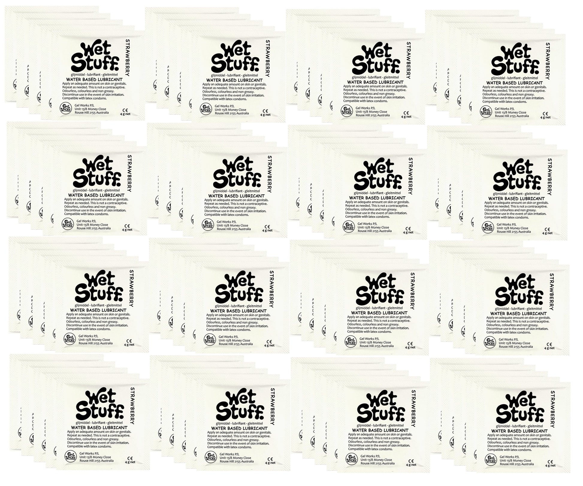 Wet Stuff Strawberry Water Based Lubricant Sample Travel Sachets 4g (100 Pack)