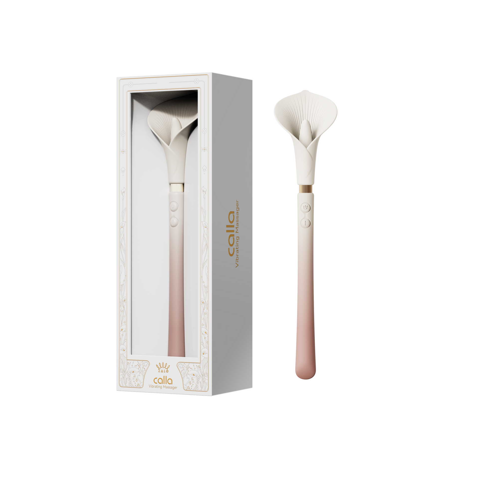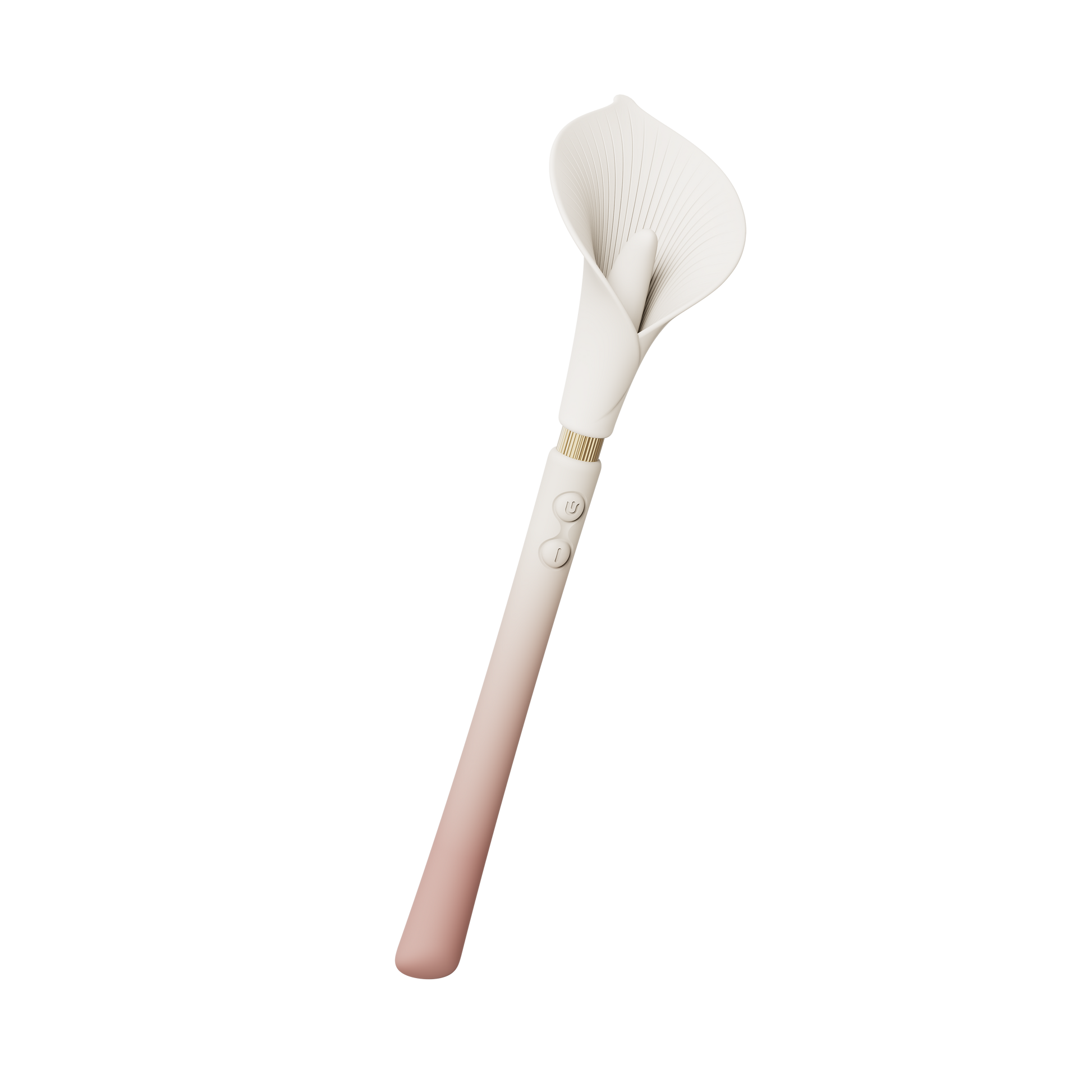 Inspired by the graceful Calla Lily, this beautifully designed personal massager quietly blends into your life. Crafted for women who value privacy, it offers discretion without compromising on function. Inside its smooth silicone exterior are two powerful motors. The petal-like tip delivers external vibrations to tease and tantalize, while the rooted base provides internal stimulation for an unparalleled experience.