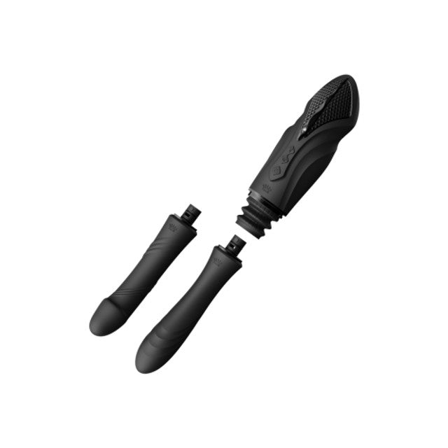 Powered by ZALO's groundbreaking PowerThrust technology, SESH delivers up to 6 thrusts per second. With a telescopic range of up to 30mm, it adapts to the user's desires, ensuring a deeply satisfying encounter. Quiet yet powerful, the SESH Sex Machine operates discreetly, allowing the user to be immersed in uninterrupted pleasure. This exquisite device comes complete with two interchangeable attachments made from body-safe silicone, each offering its own unique sensation. SESH creates an incredibly realistic encounter as the thrusting shaft warms up with continuous heating. The intense journey of bliss can be seamlessly controlled with the included remote or the ZALO Remote Pro app, ensuring a personalized experience. With its versatile suction cup base, ZALO SESH allows for hands-free exploration, empowering users to lose themselves in the moment completely.