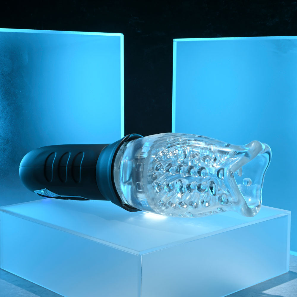 Spinning vibrations deliver pure ecstasy with this supple stroker that’s designed for a deliciously life-like feel, starting with its realistic mouth-shaped entry. Operate each motor separately to customise your pleasure, whether you want to experience the powerful bullet at the base of the channel or feel the sleeve rotation all around you – or both at once for the ultimate release.