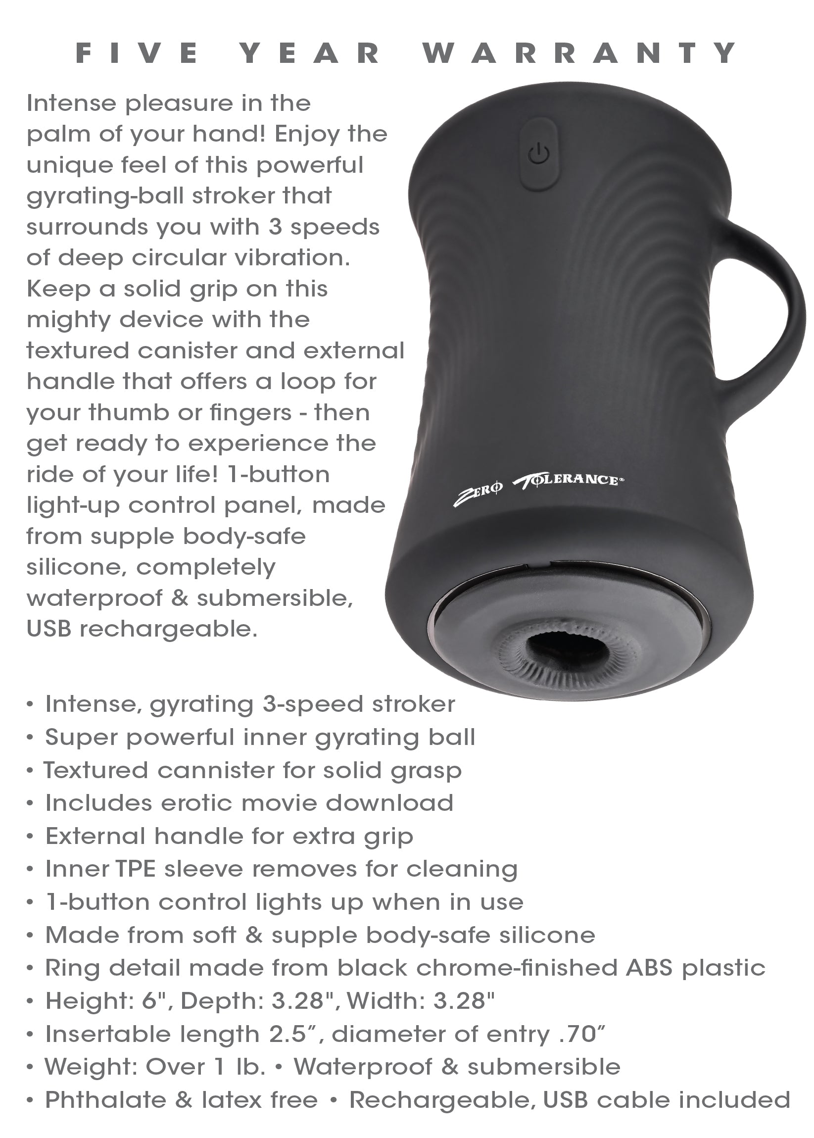 Zero Tolerance GYRO STROKE Black USB Rechargeable Powered Masturbator