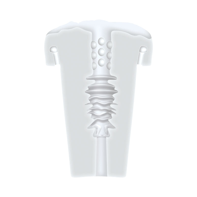 - Tight vaginal channel with ringed TPE masturbator sleeve